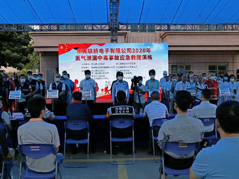 2020年茶山鎮危險化學品生產安全事故應急救援演練 在11月03號下午,為認真貫徹落實"安全第一、預防為主、綜合管理"的安全生產方針,堅持把保障員工生命安全、財產安全、維護經濟社會穩定作為事故預防工作的出發點和落腳點,最大程度地減少因生產事故造成的危害和損失。鎮應急管理分局聯同消防救援大隊、公安分局、生態環境分局、宣教文體辦、衛生健康局茶山醫院等部門以及茶溪小區、東莞聯橋電子有限公司、業輝安全培訓有限公司等相關人員在東莞聯橋電子有限公司開展2020年茶山鎮危險化學品生產安全事故應急救援演練 |