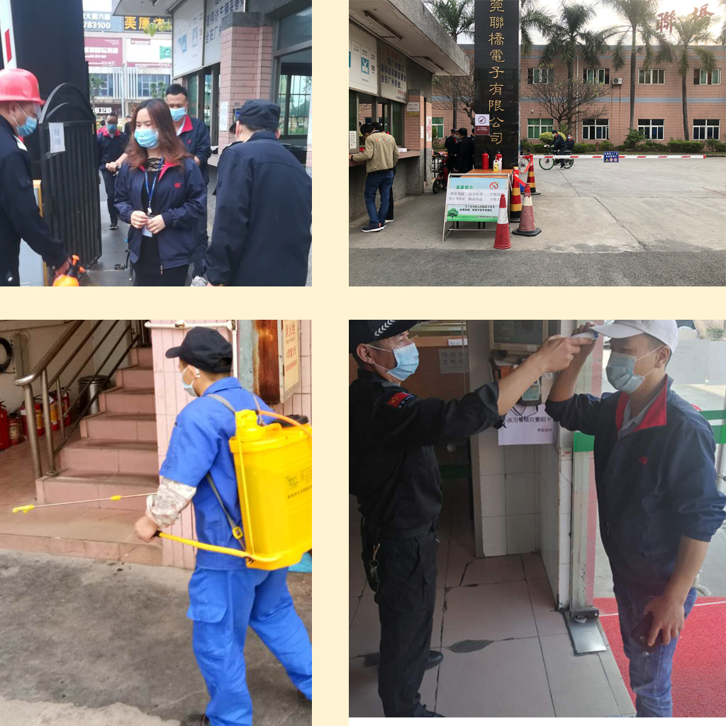 東莞聯橋電子有限公司疫情期間大家全力配合國家的工作至于開工時間推后!具體開工時間2020.2.11正式復工,在當前疫情下,公司嚴格遵守國家及地方發布的各項疫情防護政策及制度,為保護復工員工安全,開工前,公司專門制定了《關于加強遠程辦公管理,做好疫情防控的通知》和《東莞聯橋電子返崗防護工作規范》,結合工作實際均制定了相應的返崗安全防護工作措施及規范,并向全體員工進行檔內容宣貫和全方位溫馨提示。公司高管親臨工作現場,囑咐員工在工作的同時做好個人防范,并配合上級堅決打贏疫情防護狙擊戰。